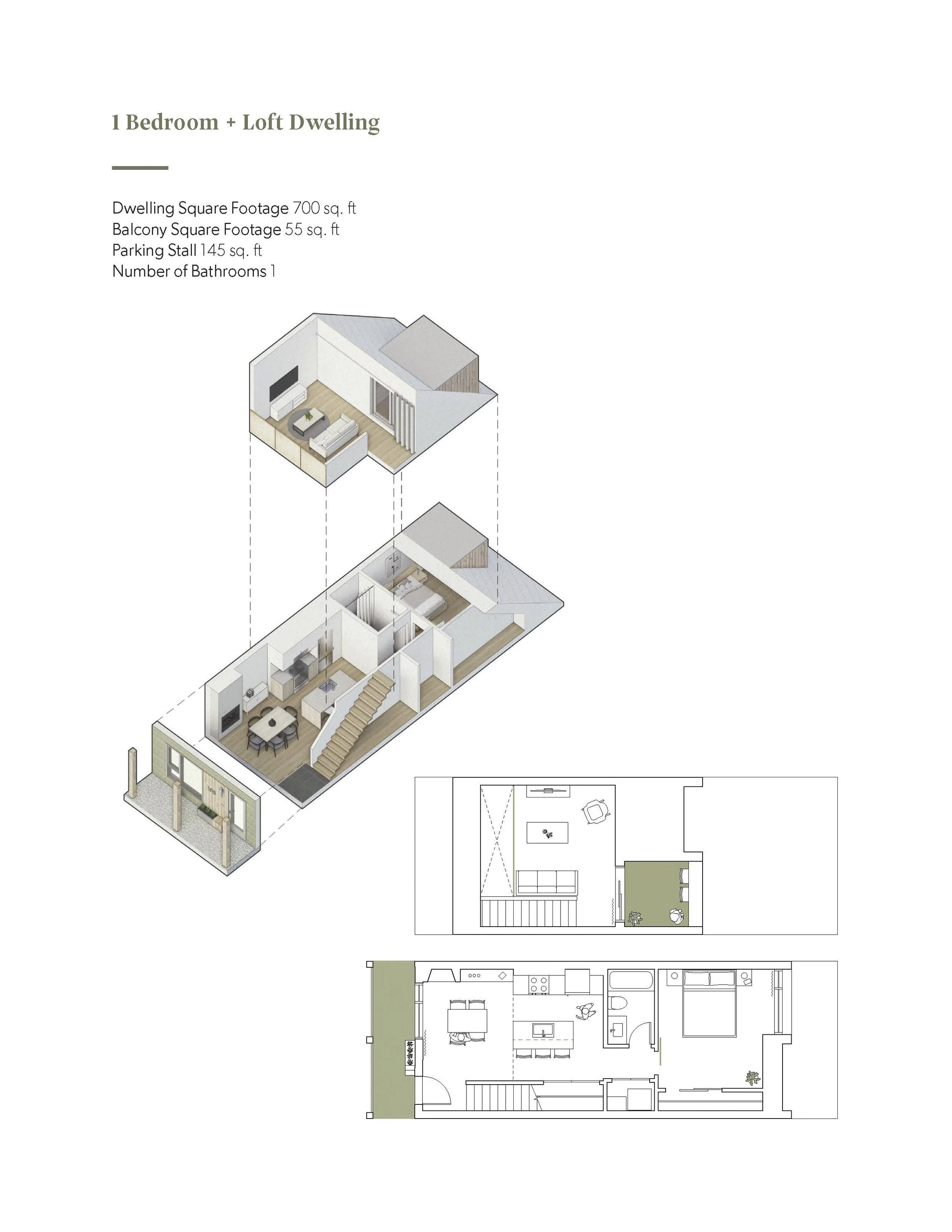 The variety of dwelling types frames these vistas in unique and dynamic ways to create bright and scenic amenity spaces in every home. The second level dwellings feature their own expansive bedroom-adjacent balcony, while the loft dwellings have a more secluded top-storey dormer balcony nook as well as a dormer-framed bedroom view.