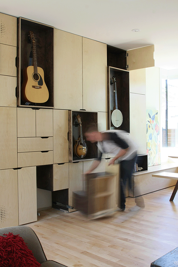 A millwork feature for a family of musicians in Bridgeland, Calgary