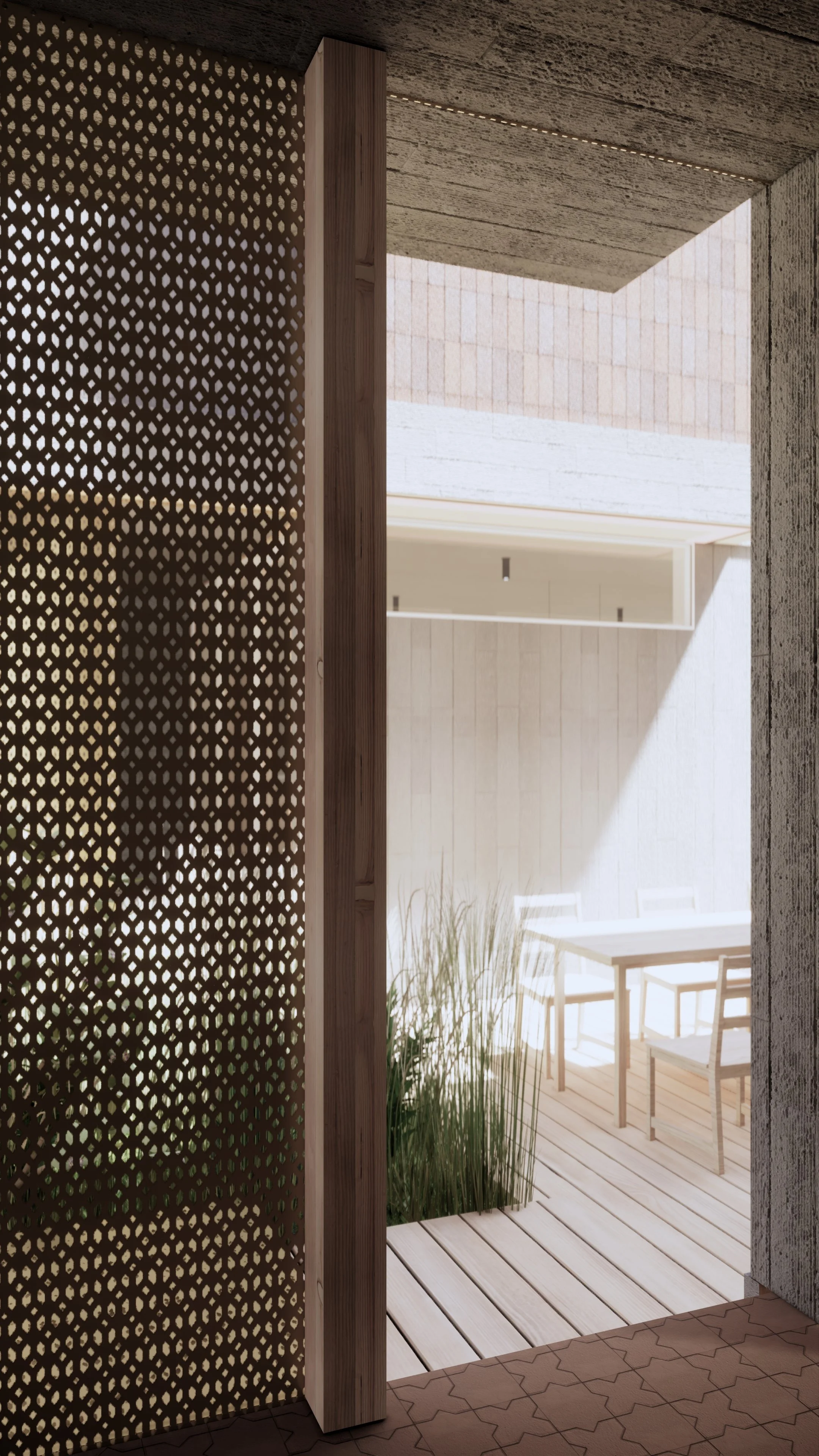 Beyond bringing natural daylight deep into the homes, these atrium-like spaces create unique opportunities for both interaction and reflection.