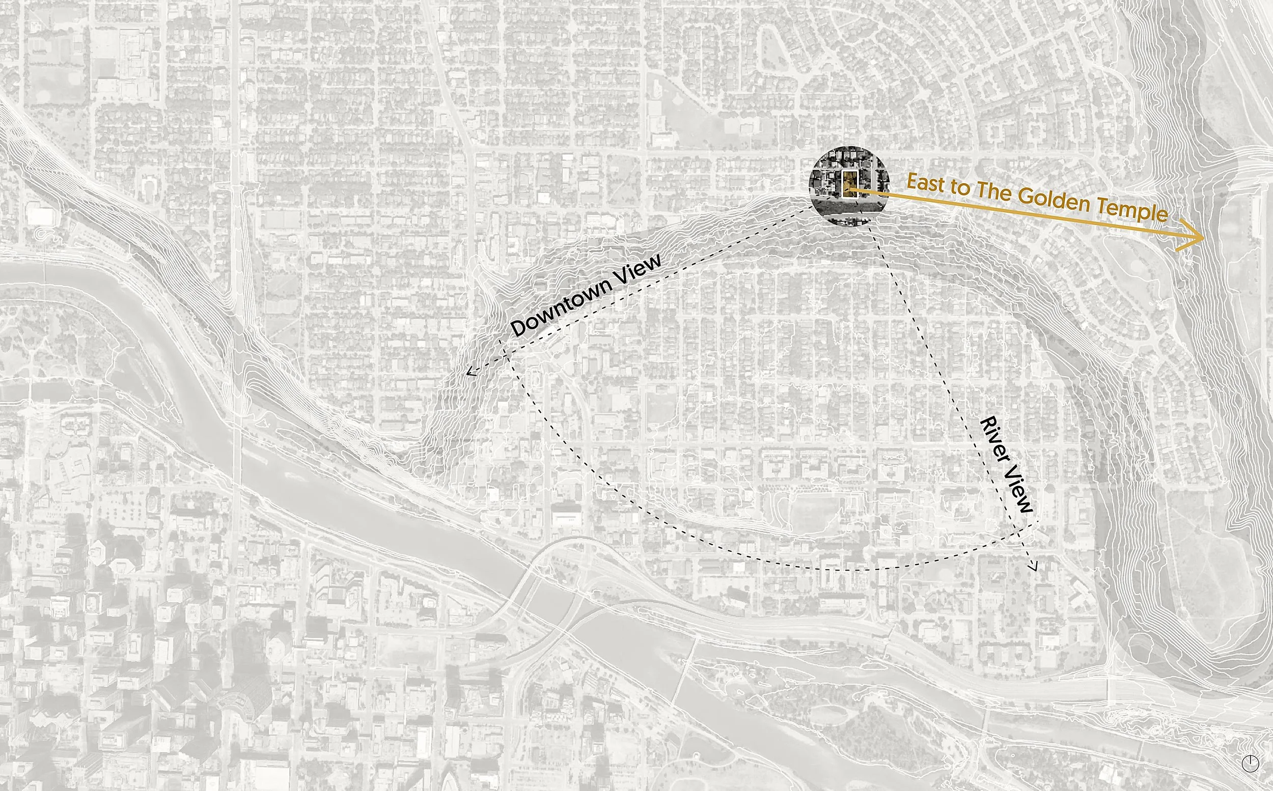 The prayer room faces south, overlooking the Calgary skyline and very distantly towards Amritsar, India, which holds a great importance within the Sikh faith. Its orientation is therefore not only symbolic, but profoundly devotional.